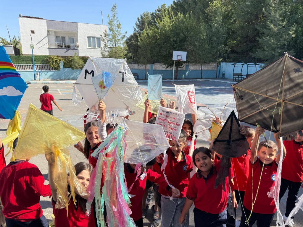 4/A Sınıfı öğrencileri hazırlamış oldukları rengarenk uçurtmalarla bir şenlik düzenlediler. Öğretmenleriyle uçurtma uçuran öğrenciler doyasıya eğlendiler.